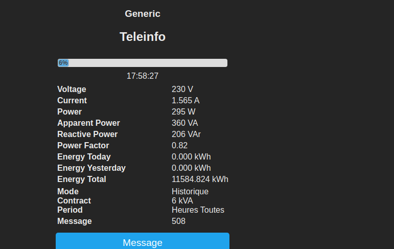 Et aucun problème avec Domoticz, tout remonte, et la carte Wemos ne redémarre pas en boucle lorsque mqtt est configuré.Pour la petite histoire le mode standard (9600 bauds) ne marche pas mieux avec cette version.